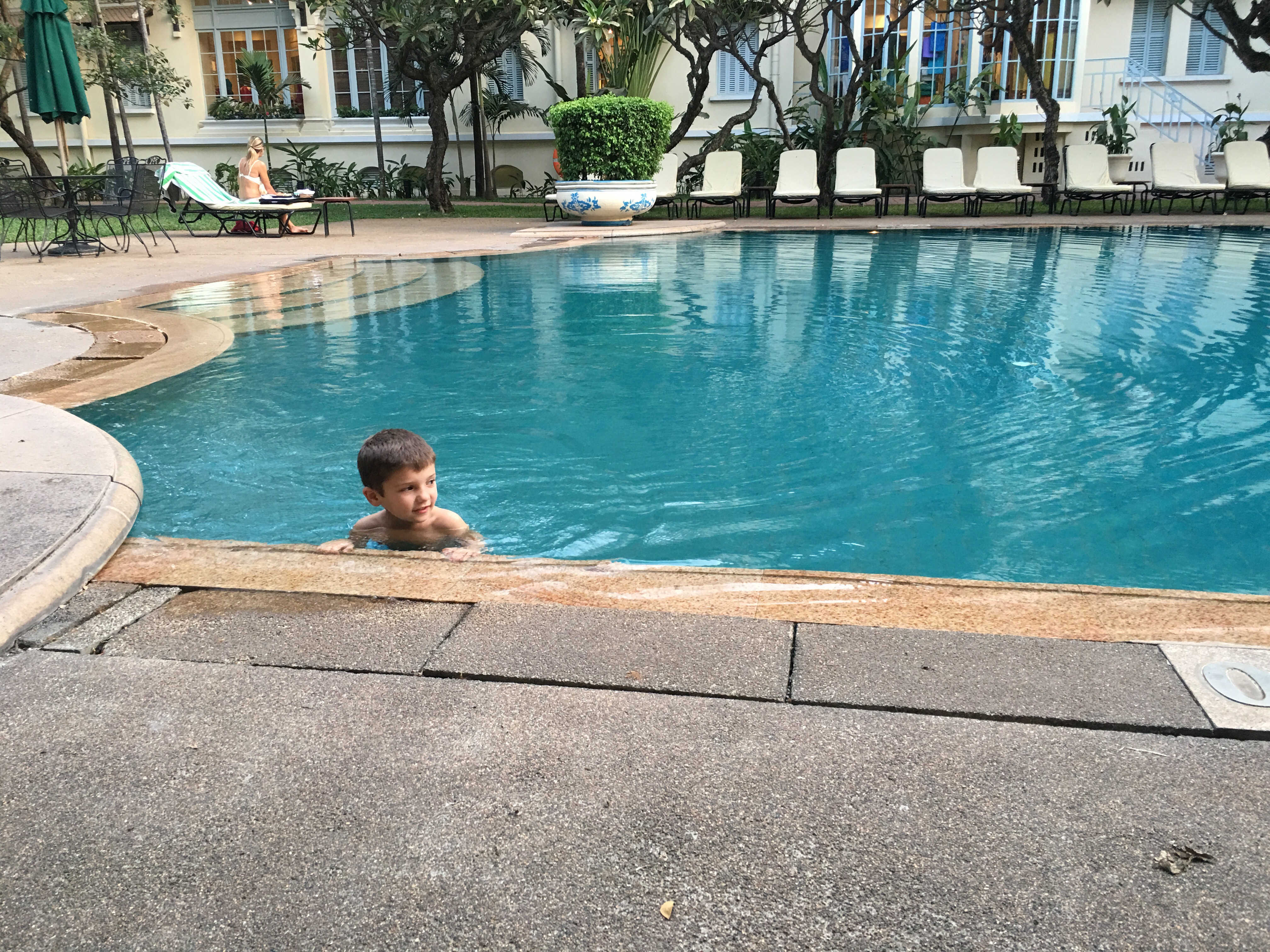 We arrived in Phnom Penh last night via air from Bangkok. It is a quick easy* flight – taking just over an hour. It was also Anna’s first flight and I am moderately proud of her. She most certainly did NOT sleep but she didn’t go full out demon baby on me either. It was pretty apparent that absolutely no one wanted to sit next to us on the plane and I don’t blame them. Sam lost a police truck under his seat on the descent, Jack had his head crushed by the arm rest at disembarkation, and Anna was restless and fidgety throughout the flight. Luckily, there were a ton of children on the flight so I think we blended in (who’s baby is that!?!?). I’ve learned at this point to just grin and bear it – no flight lasts forever. Once the kids are on the ground they are actually really great travellers.