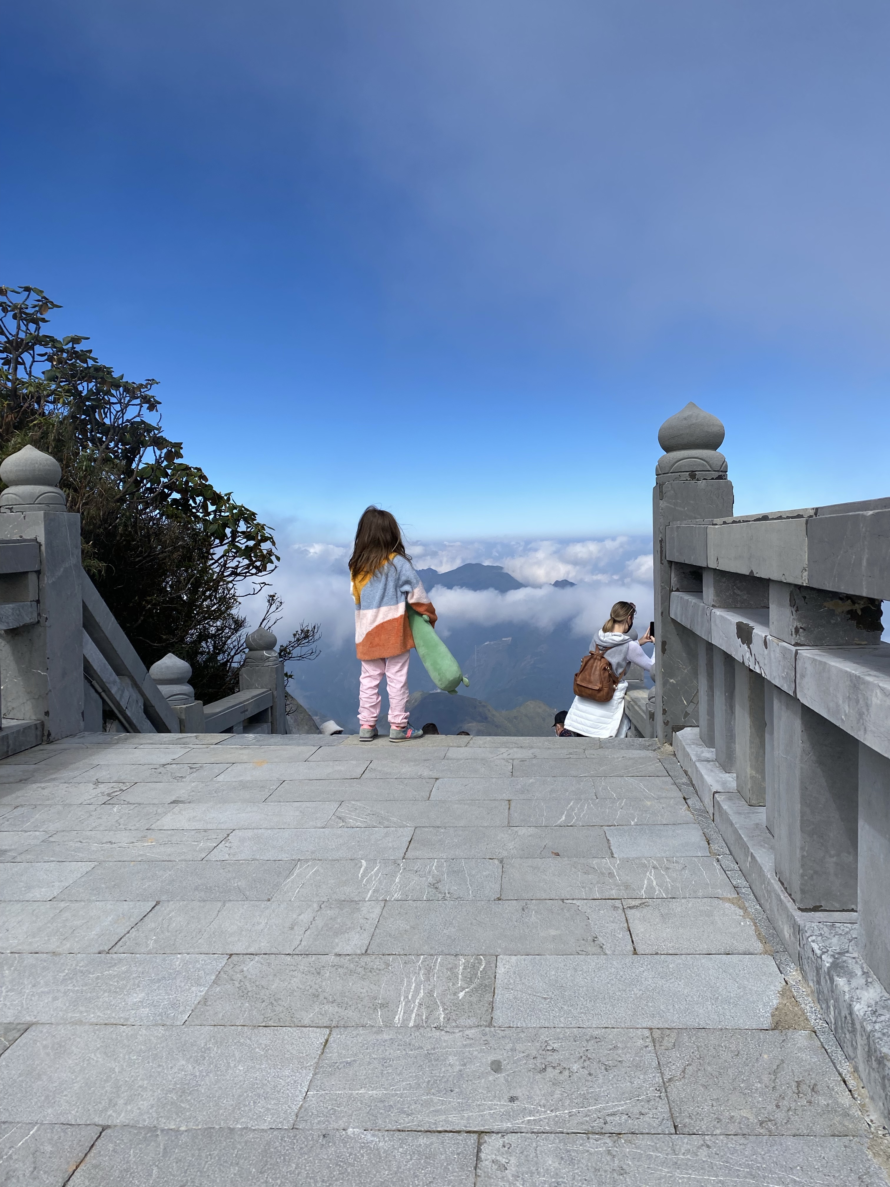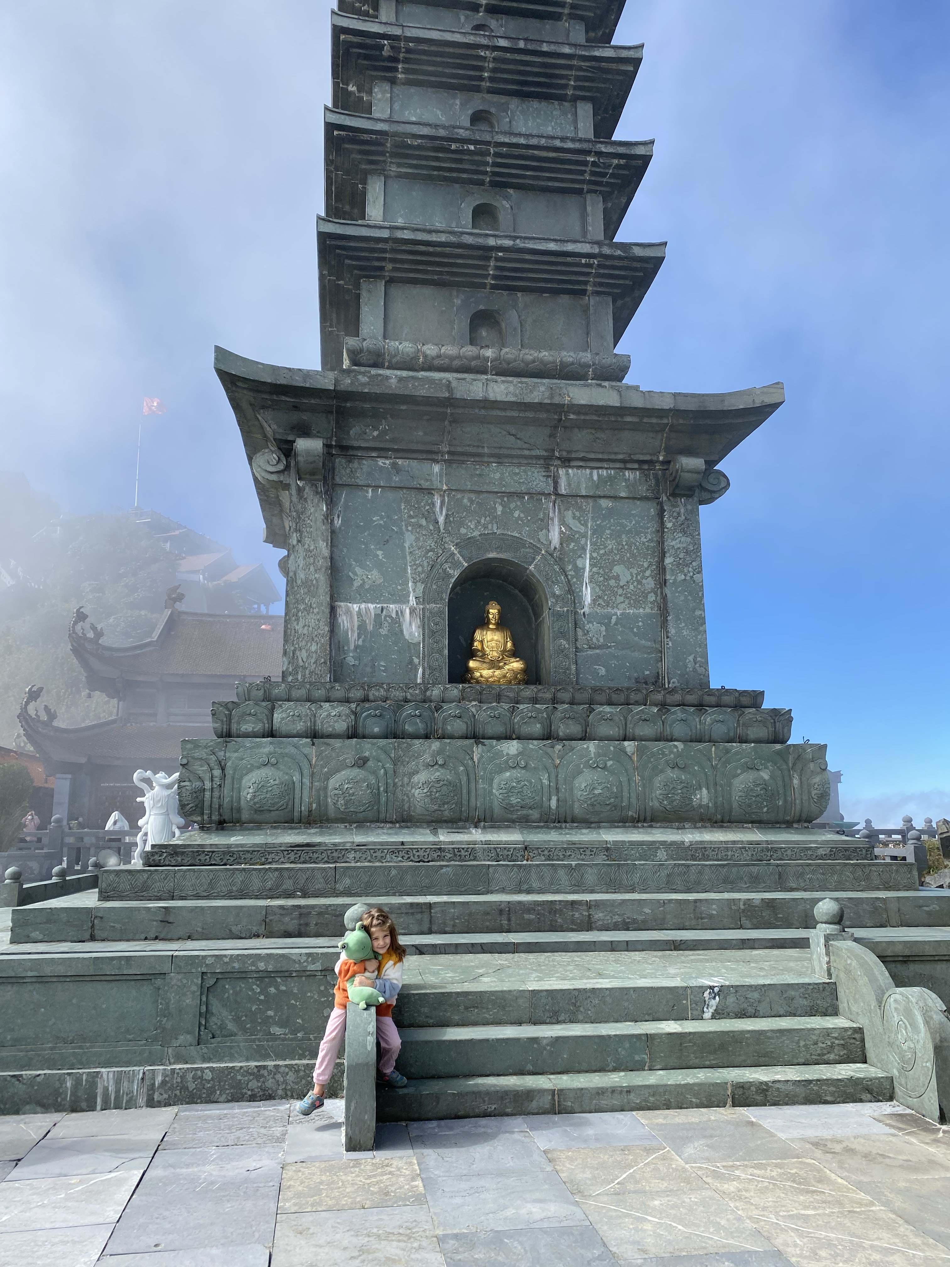 The weekend we arrived in Sa Pa, the cable car to the top of Fansipan, which had been closed for the season due to COVID, opened. And what luck, because it might have been the highlight of the trip. We took a car up to her peak and we’re lost in the clouds.